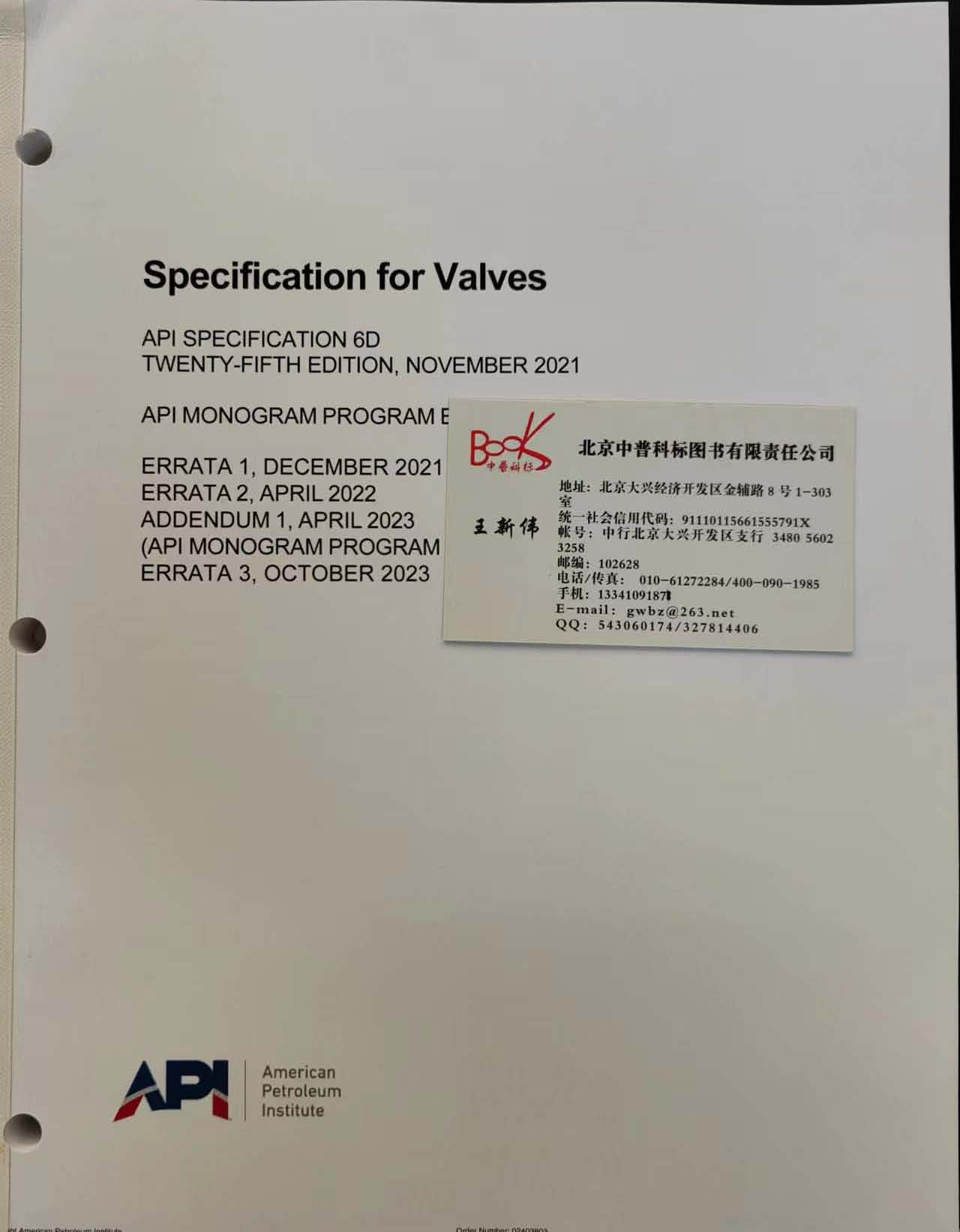 英文版到货《API Spec 6D 管道和管道阀门规范 第25版》