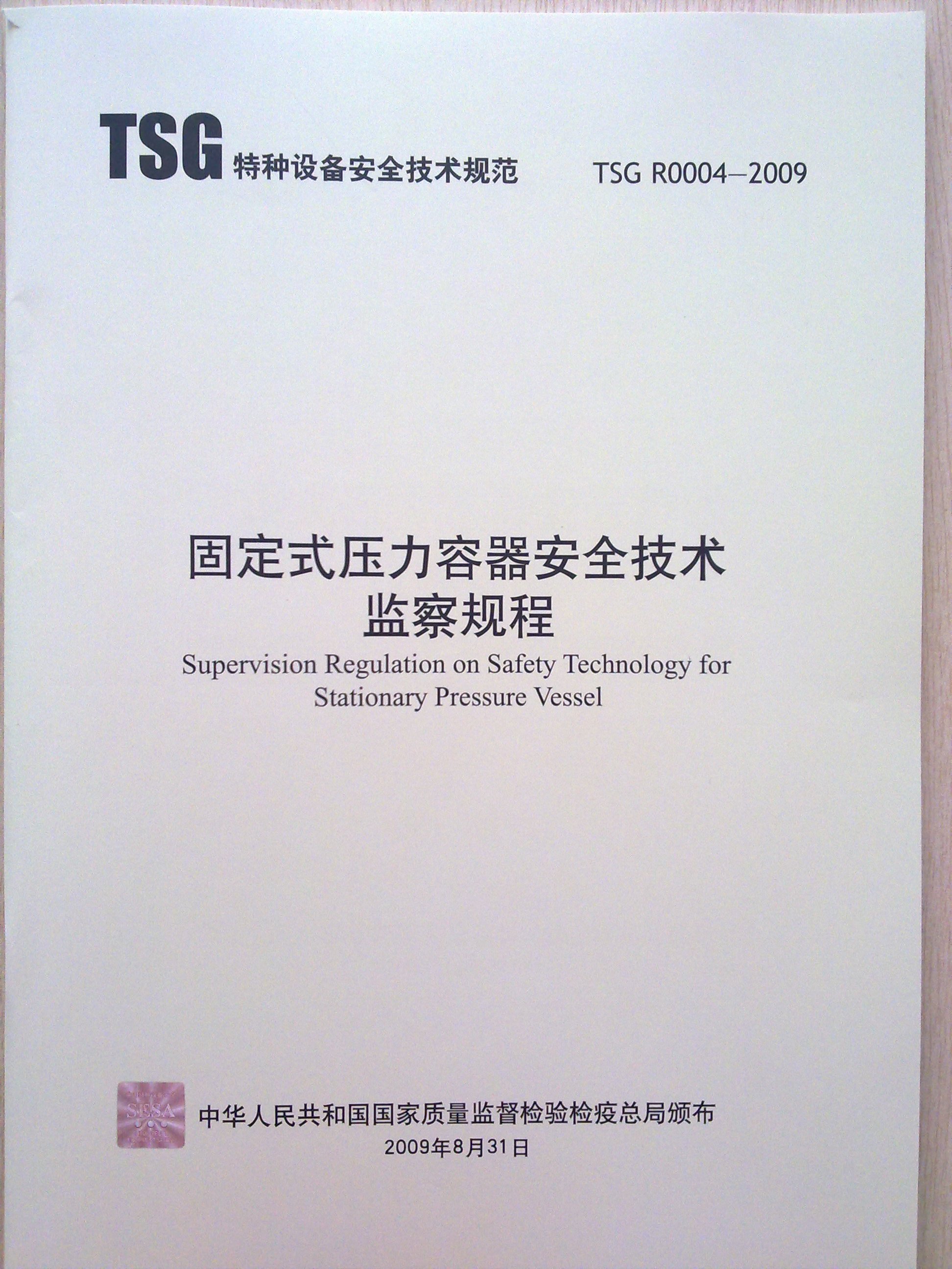 TSG R0004-2009固定式压力容器安全技术监察规程(第二版)