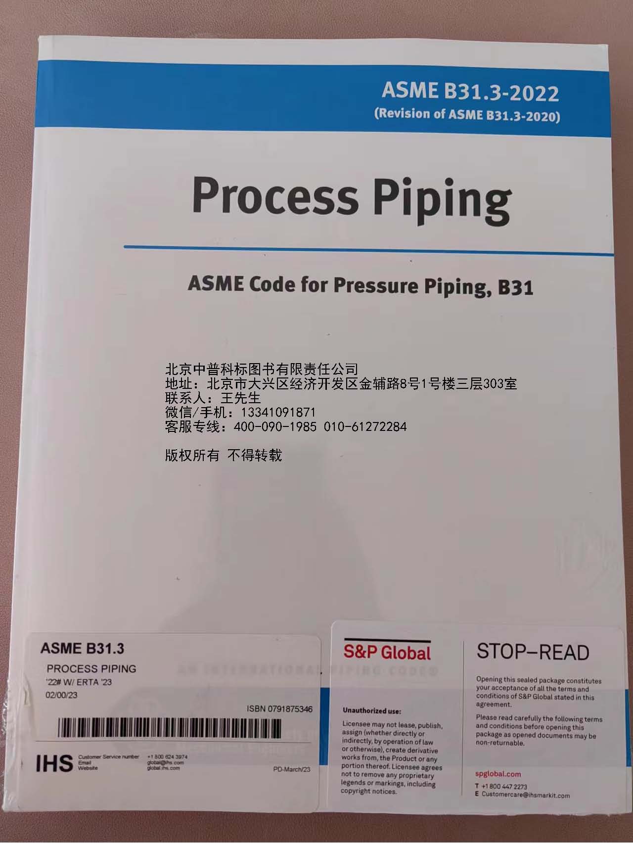 进口原版 ASME B31.3-2022+Errata , February 2023 工艺管道 Process Piping