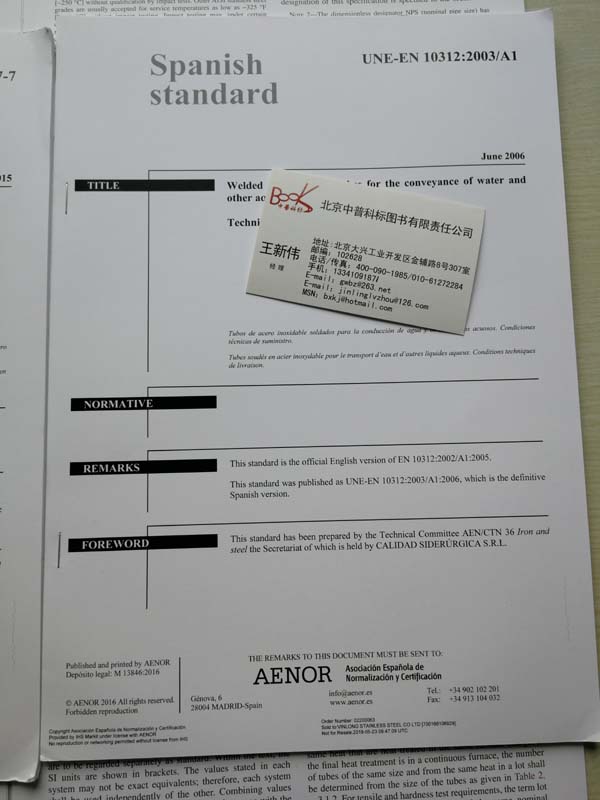 欧洲进口原版 EN 10312 ENG 2003+AMD 1-2006