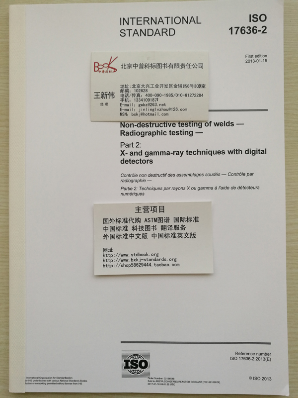 进口 ISO 17636-2 1st Edition, January 15, 2013 Non-destructive testing of welds - Radiographic testing - Part 2: X- and gamma-ray techniques with digital detectors