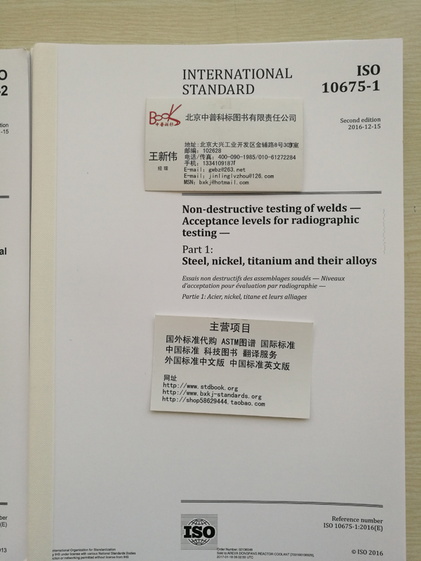 ISO 10675-1 2nd Edition, December 15, 2016 Non-destructive testing of welds - Acceptance levels for radiographic testing - Part 1: Steel, nickel, titanium and their alloys
