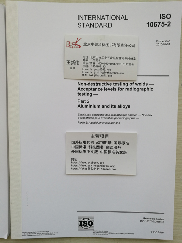进口 ISO 10675-2 1st Edition, September 1, 2010 Non-destructive testing of welds — Acceptance levels for radiographic testing — Part 2: Aluminium and its alloys